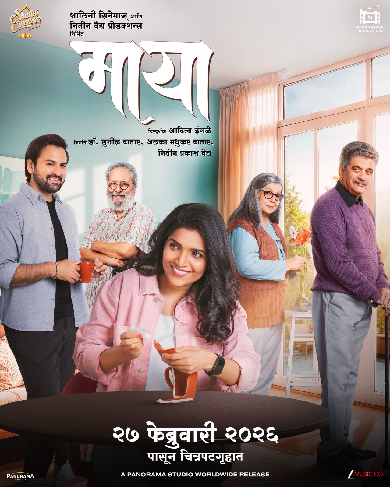 शालिनी सिनेमाज आणि नितीन वैद्य प्रॉडक्शन निर्मित ‘माया’ चित्रपटाचे डॉ. सुनील दातार, अलका मधुकर दातार, नितीन प्रकाश वैद्य निर्माते आहेत. आदित्य इंगळे दिग्दर्शित या चित्रपट मुक्ता बर्वे, गिरीश ओक, सिद्धार्थ चांदेकर, विजय केंकरे आणि रोहिणी हट्टंगडी यांच्या प्रमुख भूमिका आहेत. येत्या २७ फेब्रुवारी २०२६ रोजी सर्वत्र प्रदर्शित होणारा हा चित्रपट पोस्टरमुळे प्रेक्षकांमध्ये उत्सुकता निर्माण करत असून, नात्यांच्या गुंत्यातून उमटणारी ही कथा प्रेक्षकांच्या मनाला नक्कीच भिडेल, अशी अपेक्षा व्यक्त केली जात आहे.