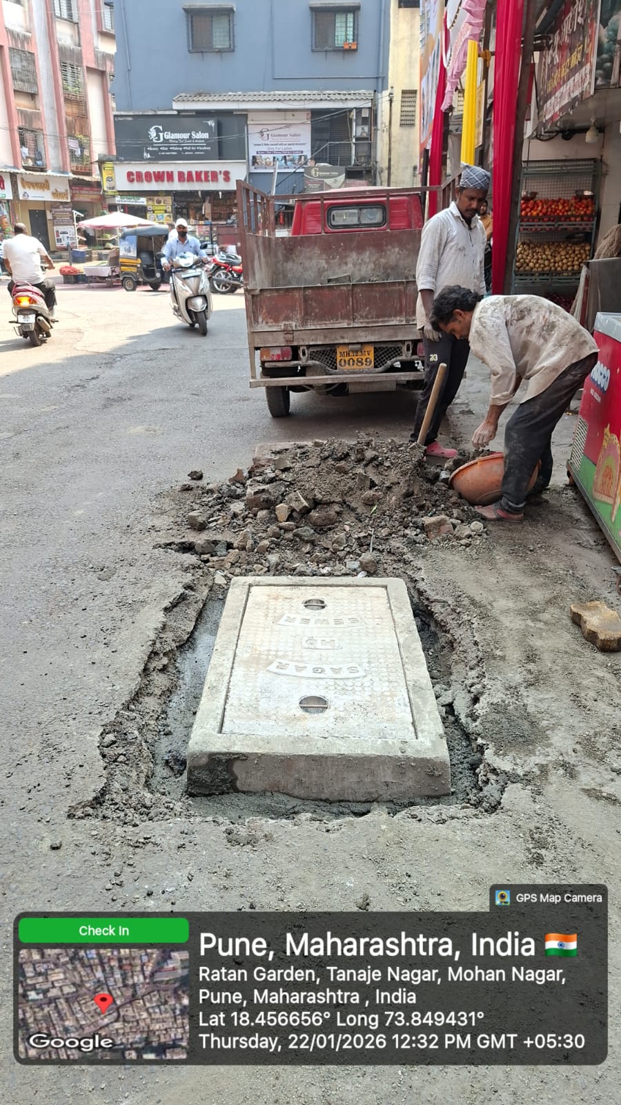 सदर ठिकाणी चेंबर खराब अवस्थेत असून चुकून अपघात घडण्याची दाट शक्यता होती. ही बाब स्थानिक नागरिकांनी निदर्शनास आणून दिल्यानंतर तातडीने दखल घेत चेंबर दुरुस्तीचे काम पूर्ण करून सुरक्षितता सुनिश्चित करण्यात आली.