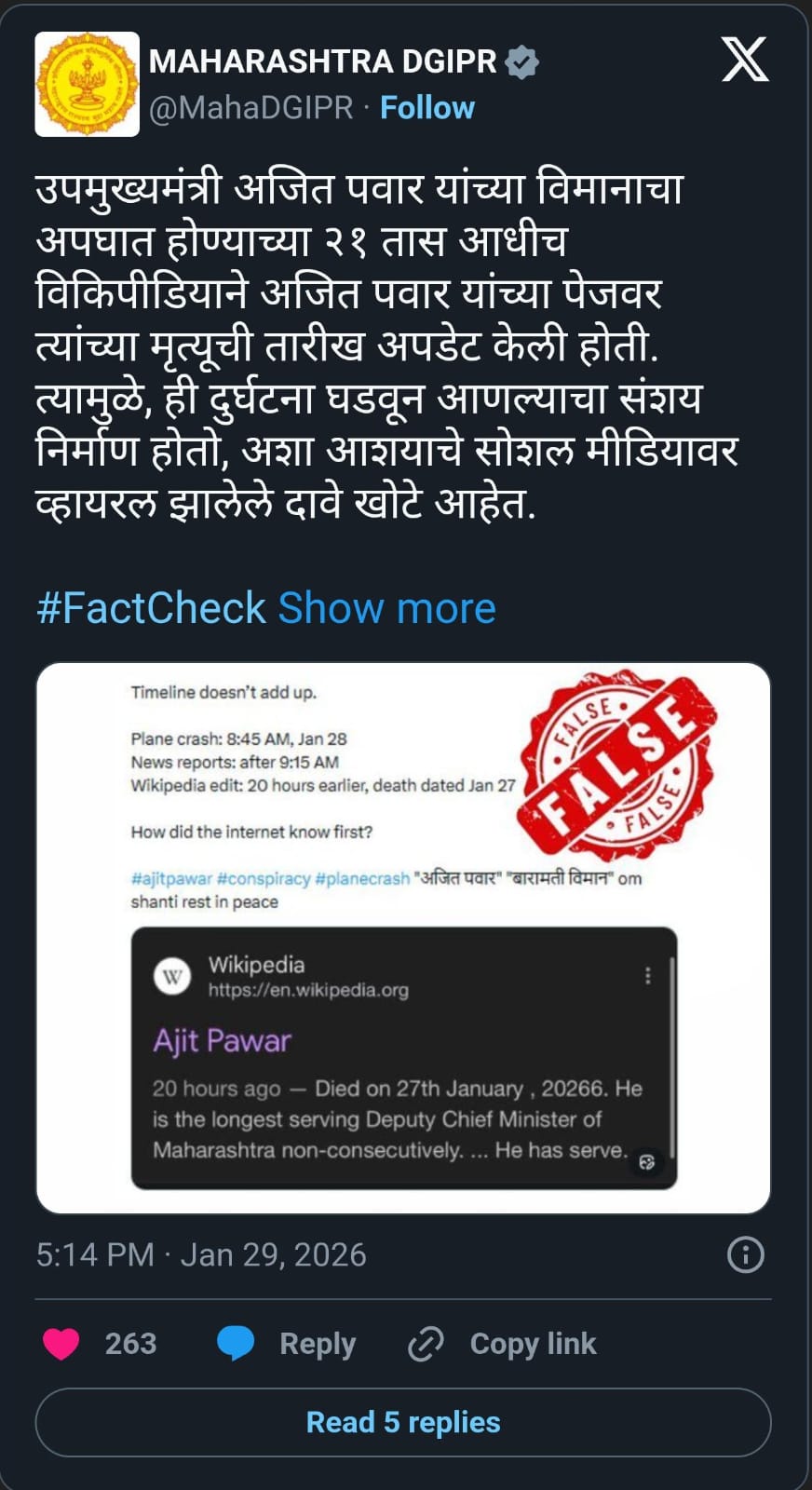 विकिपीडियावर 27 जानेवारीलाच अजित पवारांच्या मृत्यूची अपडेट, सत्य काय?