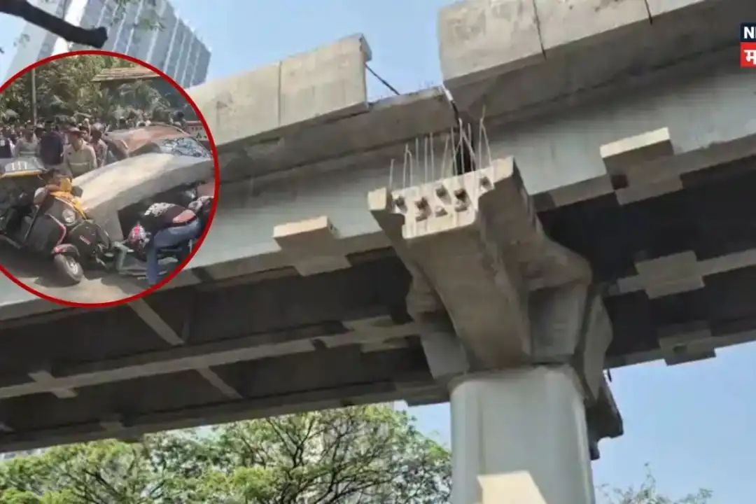 मुंबईत मेट्रोचे काम सुरू असताना आज दुपारी काळजाचा ठोका चुकवणारी एक भीषण दुर्घटना घडली. मुलुंड पश्चिम भागात मेट्रोच्या कामाचा एक अवजड भाग पिलर आणि स्लॅबचा भाग तब्बल २५ फुटांच्या उंचीवरून थेट रस्त्यावरून जाणाऱ्या वाहनांवर कोसळला.